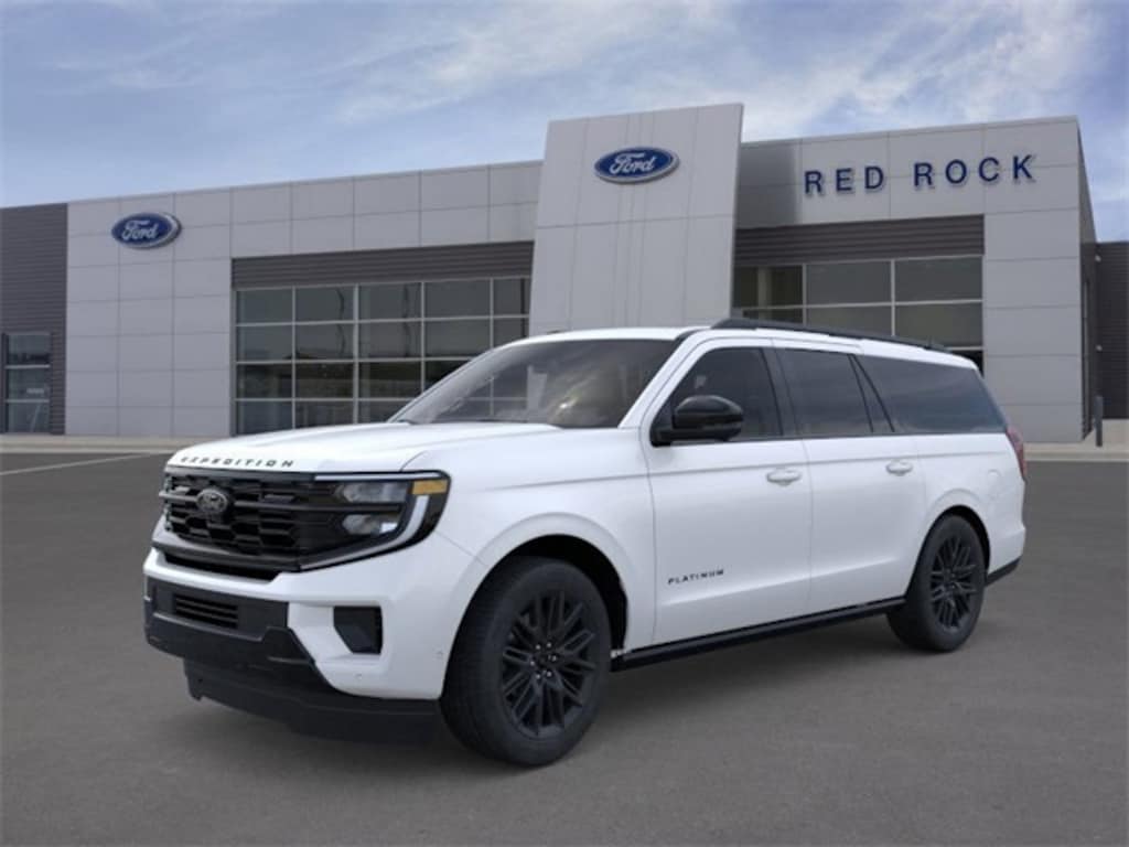 $4,000 off MSRP! 2025 Ford Expedition Max Platinum 4D Sport Utility 3.5L V6 4WD Star White Metallic Tri-Coat Navigation System, Leather Seats, Backup Camera, 4X4, Heated / Cooled Seats, Remote Start, 3rd Row Seats, 2nd Row Power-Folding Captain's Chairs, Black Belt Molding, Black Expedition Lettering On Hood, Black Headlamp Bezel w/Ebony Trim Applique, Black Platinum Badge On Tailgate, Black Roof Rails, Carbon Black Front Bumper/Fascia, Continuous Control Damping Suspension, Driver's Package, Engine Sound Enhancer, Equipment Group 600A Standard Package, High Flow Exhaust System, Radio: B&O Unleashed Sound System by Bang & Olufsen, Rear Side Windows Laminated Glass, Red Brake Calipers, Signature Grille Lighting, SiriusXM w/360L, Stealth Appearance Package, Stealth Performance Package, Wheels: 22" Magnetite Painted Aluminum. $2,000 - Exp. 12/31/2025; Trade any used vehicle 10 years old or newer with less than 100,000 miles and receive $2000 trade assistance. Finance with any Red Rock Ford lender and receive $1000 off. Offer is incompatible with Ford Motor Credit Subvened rates. $1,000 - Exp. 01/29/2026